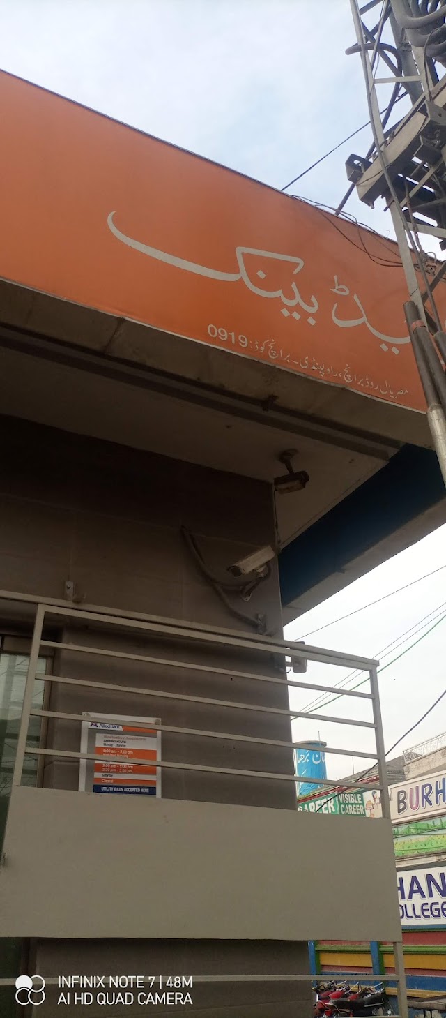 This is the only bank in this area. The nearest bank is ABL Golra mor on pishawer road and on other side Askari Bank near Qasim market. My rating is for ATM service which never disappoints me. Always working even on weekends or in holidays. ABL staff always keep mechine full of cash so people can withdraw easily other wise they have to travel alot just for one transaction.