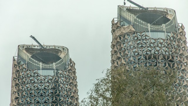 These buildings are twins, their windows have been installed like dates tree